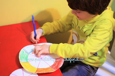 stąd. Zrealizowaliśmy go na koniec sezonu śnieżnego, aby mrozy już nie dokuczały młodym malarzom w ich twórczej pracy. ;-) Przygotowałam więc słoiki z farbą i pędzlem każdy, no i dzieci zaraz zabrały się do malowania resztek po bałwanie.
